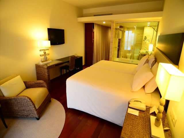 There are 216 twin rooms (16 are inter-communicating), 24 doubles, 12 triples and 9 suites. Each room has a satellite TV, video, mini-bar, air-conditioning and a terrace. Free Wi-Fi is available throughout the hotel. Open parking is next to the hotel and there is free Wi-Fi.
