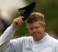 Fri, 1st Nov 2002 Darren Clarke - (Northern Ireland) Smurfit European Open The K Club - Straffan - Co. Kildare - Ireland - 5th to 8th July, 2001 With three strokes in hand Darren Clarke from northern Ireland claimed victory at the European Open on the European Tour held at Straffan in Ireland. A group of three golfers were behind him and they were Padraig Harrington, Ian Woosnam and Thomas Bjorn. |